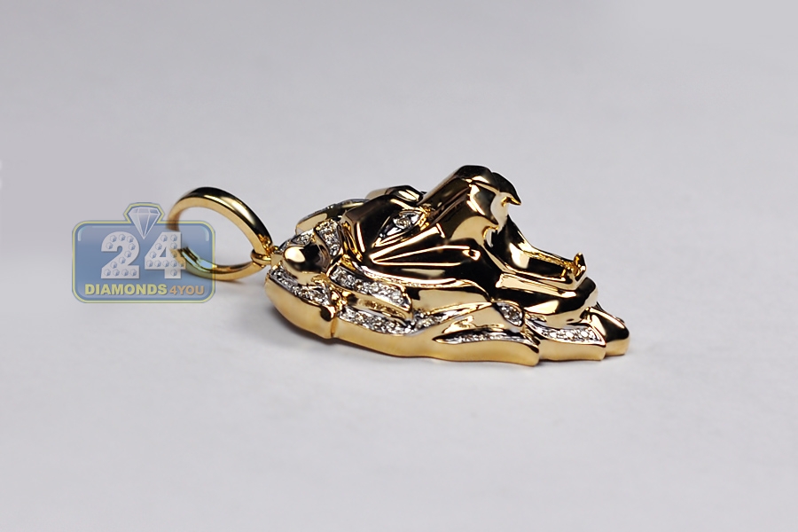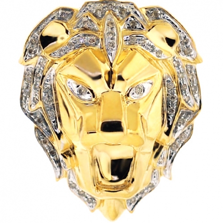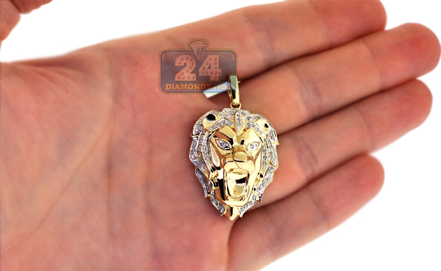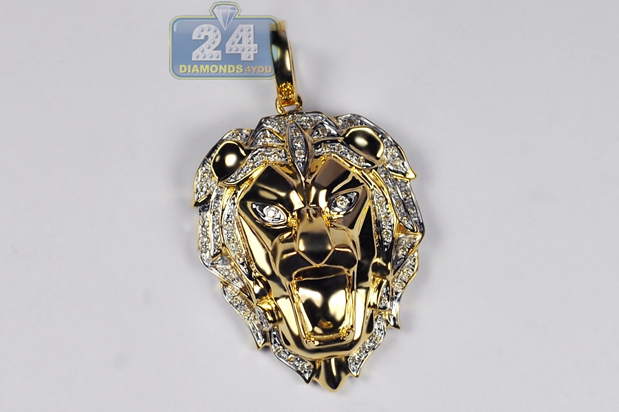 10K Yellow Gold 0.33 ct Diamond Lion Head Mens Pendant