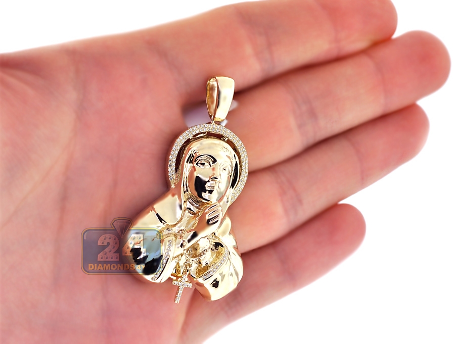 10K Yellow Gold 0.33 ct Diamond Virgin Mary Cross Pendant