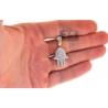 Our Hamsa Hand of God is a powerful talisman known to ward off negative energy! Expertly manufactured from 10 karat yellow gold, it has high-polished glossy finish with white rhodium accents. This protective pendant for men is amazed with white round shaped natural diamonds of 0.39 carat. It measures 35 mm in total length, and the hand is 22 x 17 mm. You can use a chain of up to 2.5 mm in thickness to fit the bail. Our small Hamsa pendant will become your favorite accessory!