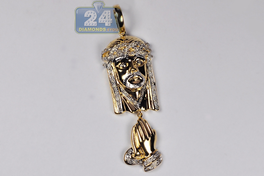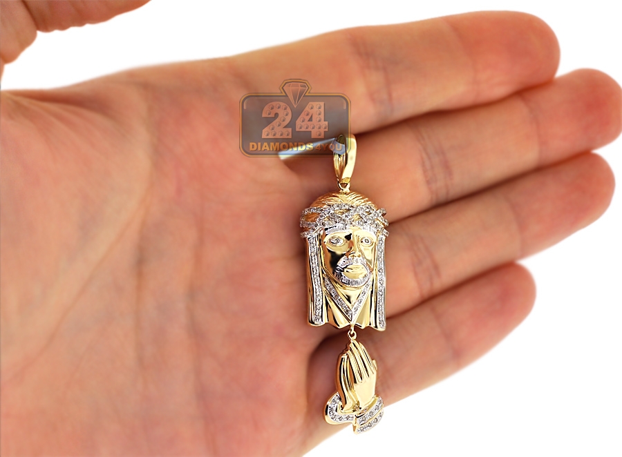 10K Yellow Gold 0.40 ct Diamond Jesus Praying Hands Pendant