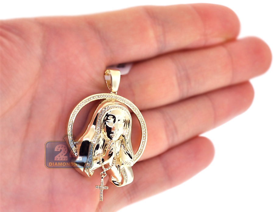 10K Yellow Gold 0.40 ct Diamond Virgin Mary Cross Pendant