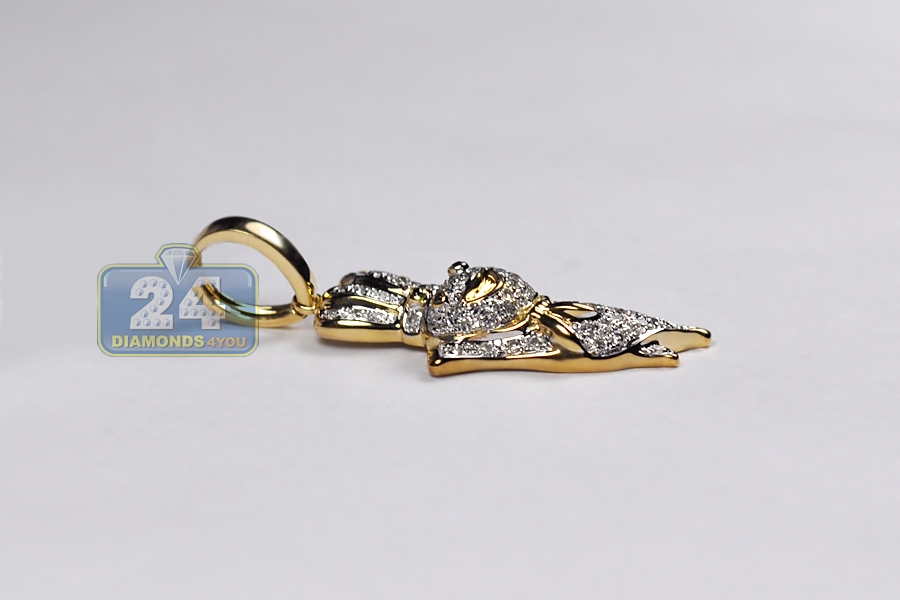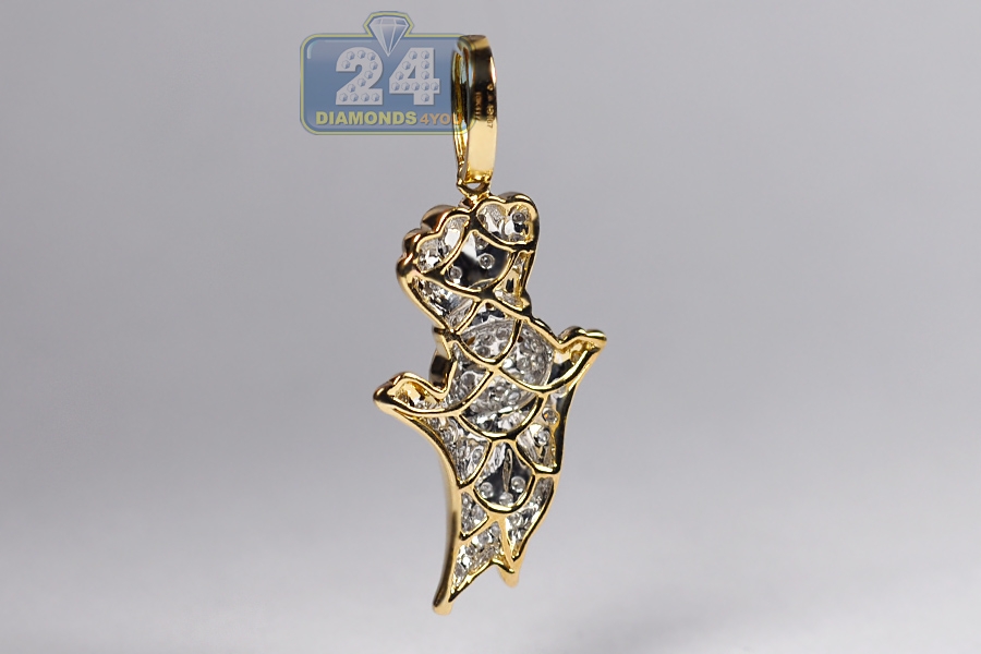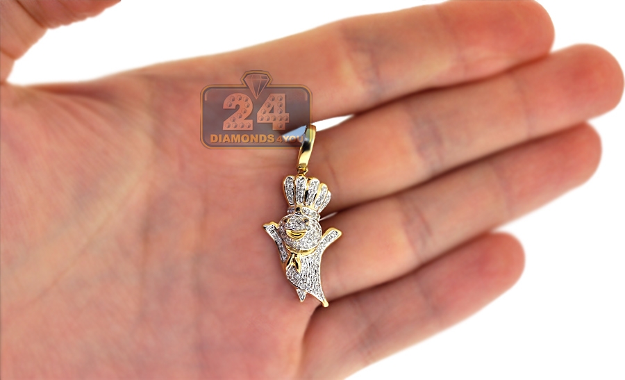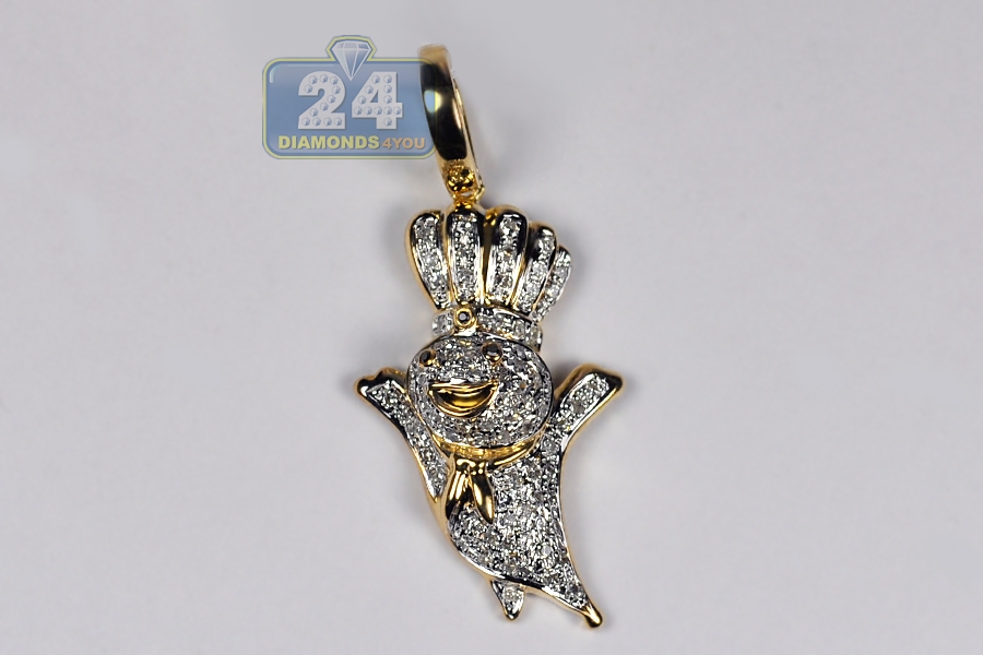 Paying tribute to one of the most well-known advertising characters, this Poppin' Fresh pendant is professionally created from affordable 10k yellow gold with ultra-shiny smooth finish. It's accented with white round shaped natural diamonds totaling 0.44 carat. Our men's diamond pendant has hanging length of 39 mm, and the boy itself is 28 x 18 mm. You can use a necklace of up to 3.5 mm in width to fit the bail. Complete your stylish look with our hip-hop pendant for men!