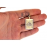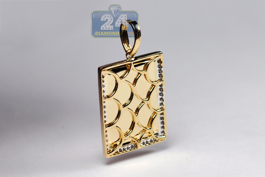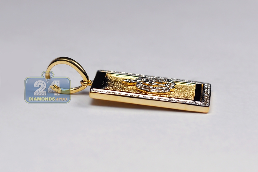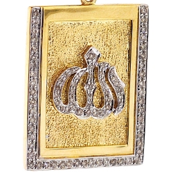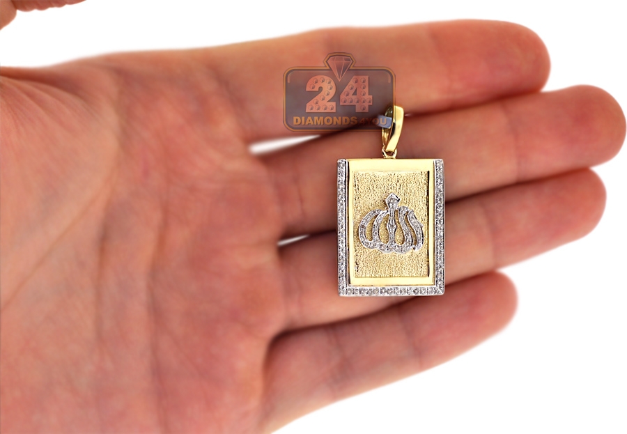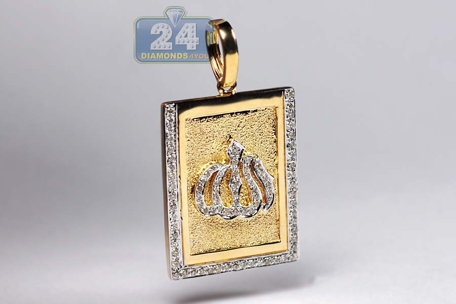 Wearing our diamond Islamic medallion pendant you will show your love for Allah with pride! It's artfully produced from warm 10k yellow gold, polished for ultra-smooth shiny look, and covered with bright white rhodium accents. This religious pendant is set with 0.47 carat of icy white round-cut natural diamonds. It measures 38 mm in total length, and the medallion itself is 27 x 21 mm. The bail is suitable for a 3.5 mm wide chain. This men's diamond pendant is both trendy and meaningful!