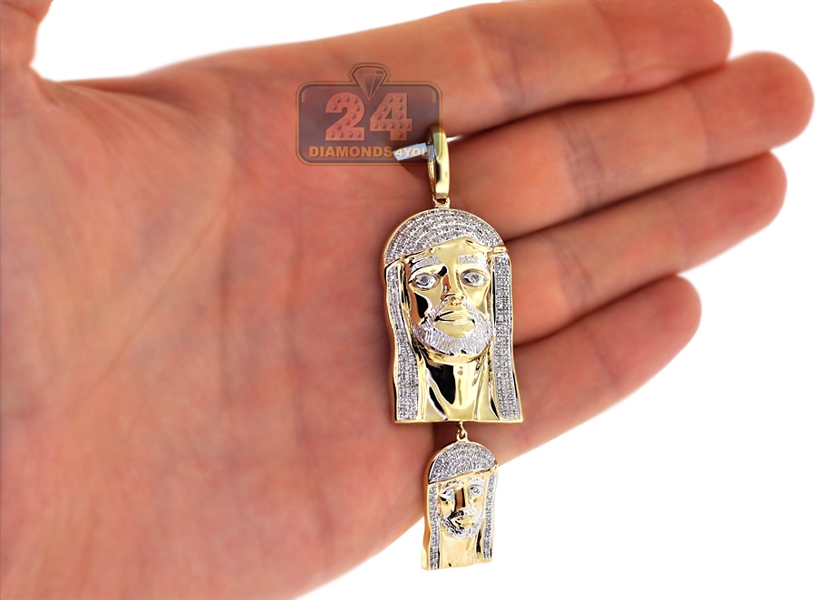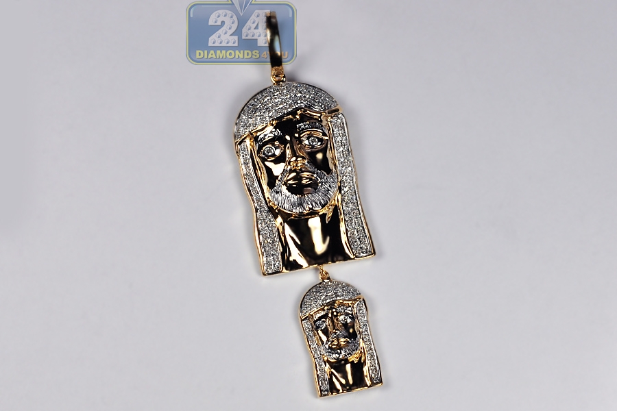 10K Yellow Gold 0.50 ct Diamond Jesus Christ Head Dual Pendant
