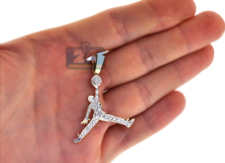 10K Yellow Gold 0.59 ct Diamond Basketball Player Mens Pendant