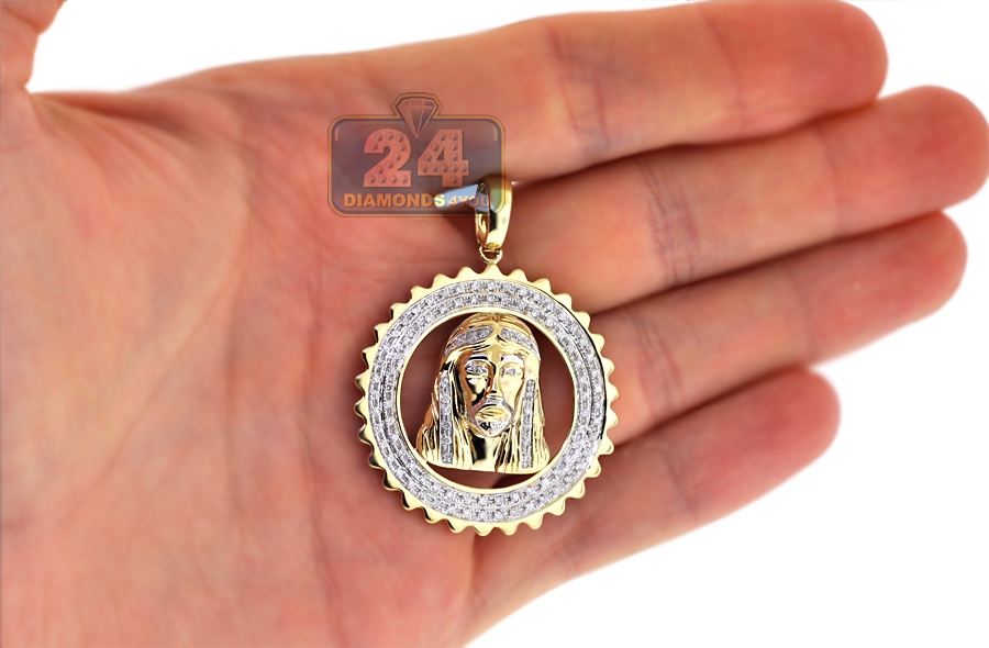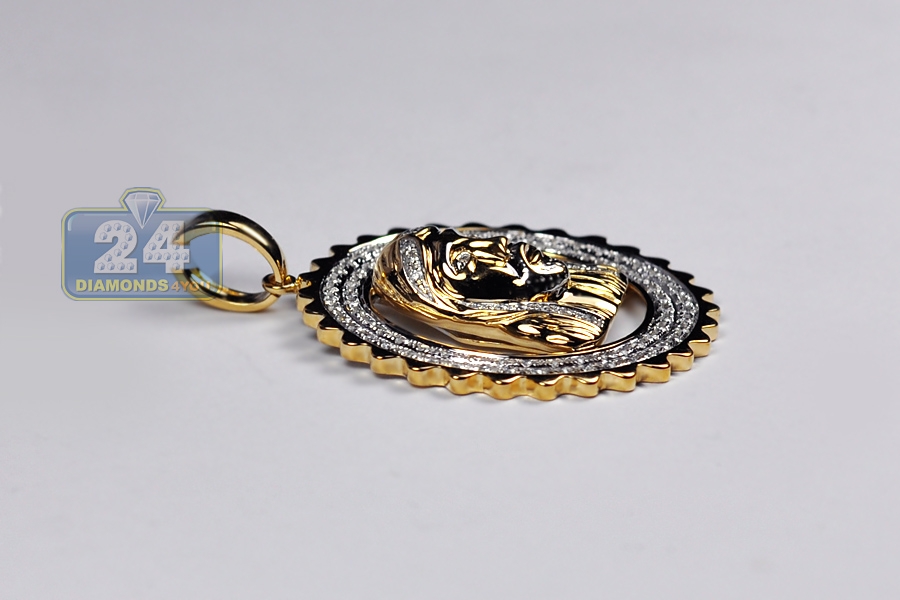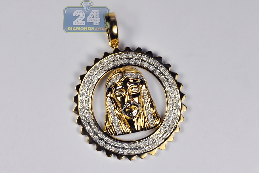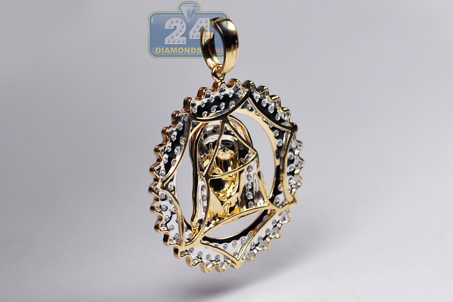 10K Yellow Gold 0.64 ct Diamond Jesus Mens Framed Pendant