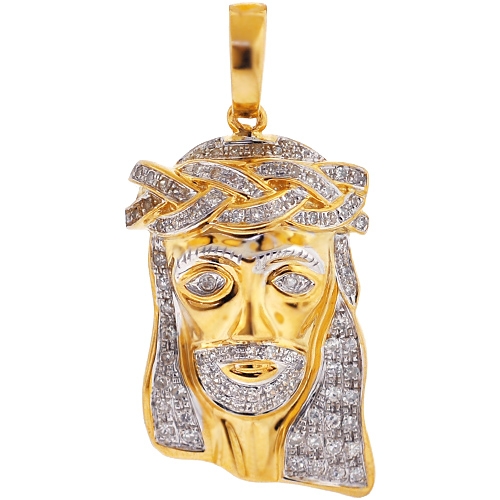 10K Yellow Gold 0.66 ct Diamond Jesus Christ Face Pendant