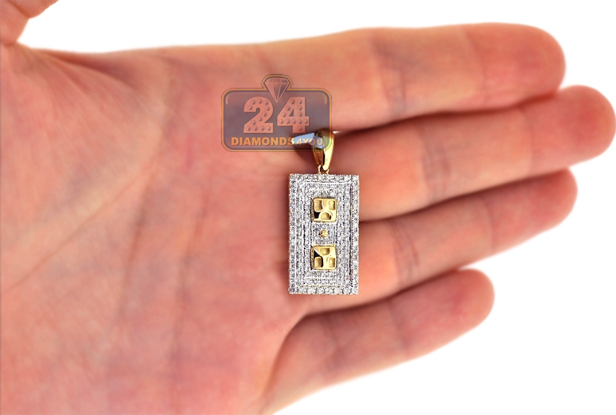 With this plug socket pendant, you will make an electrifying statement wherever you go! It's expertly manufactured from warm 10k yellow gold, and highly polished for brilliantly smooth shiny finish. This hip-hop pendant for men is accented with 0.74 carat of white round-cut natural diamonds which covered with white rhodium for glorious sparkle. The piece of jewelry measures 34 mm in total length, and the board is 25 x 15 mm. The bail fits a chain of up to 2 mm wide. Update your look wearing men's diamond pendant!