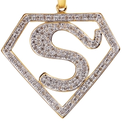 10K Yellow Gold 0.75 ct Diamond Superman Logo Pendant