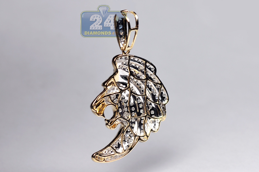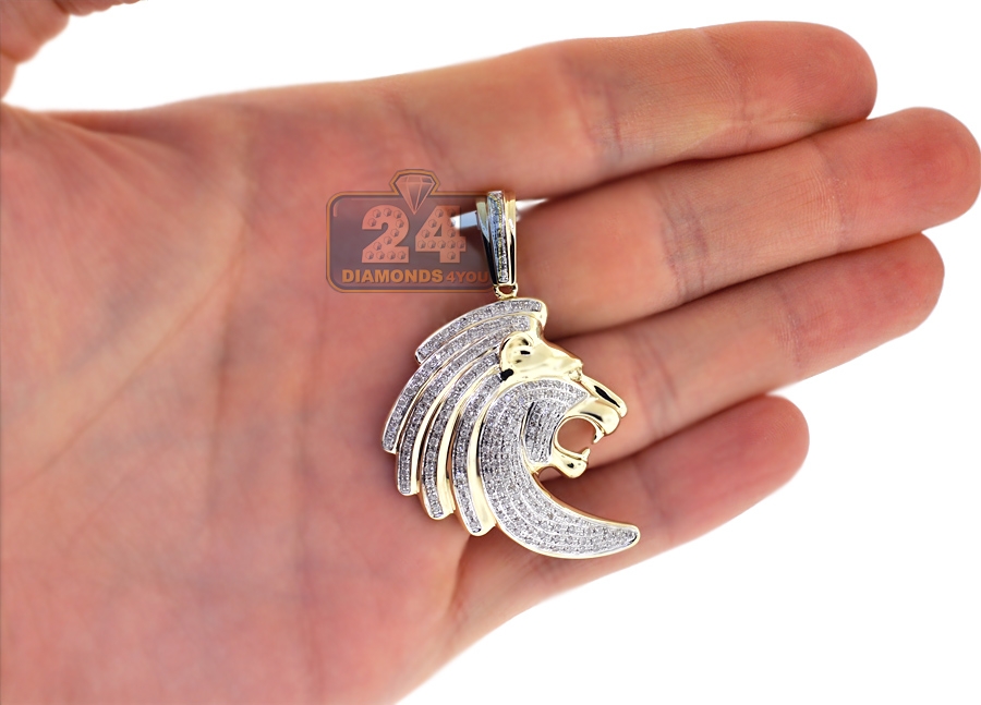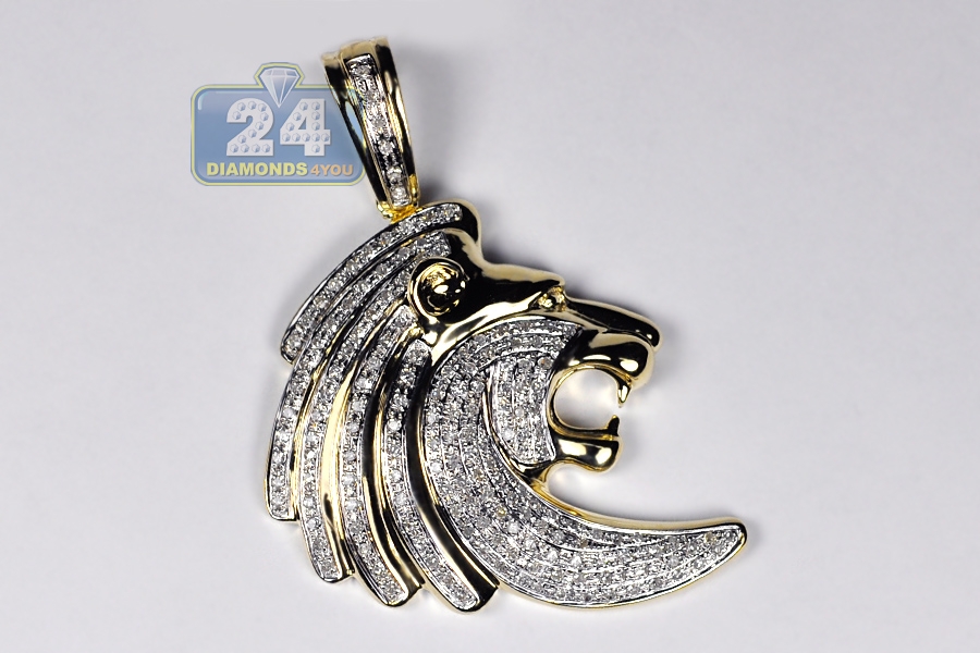 10K Yellow Gold 0.77 ct Diamond Lion Head Mens Pendant