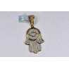 10K Yellow Gold Diamond Hamsa Hand Evil Eye Medium Pendant