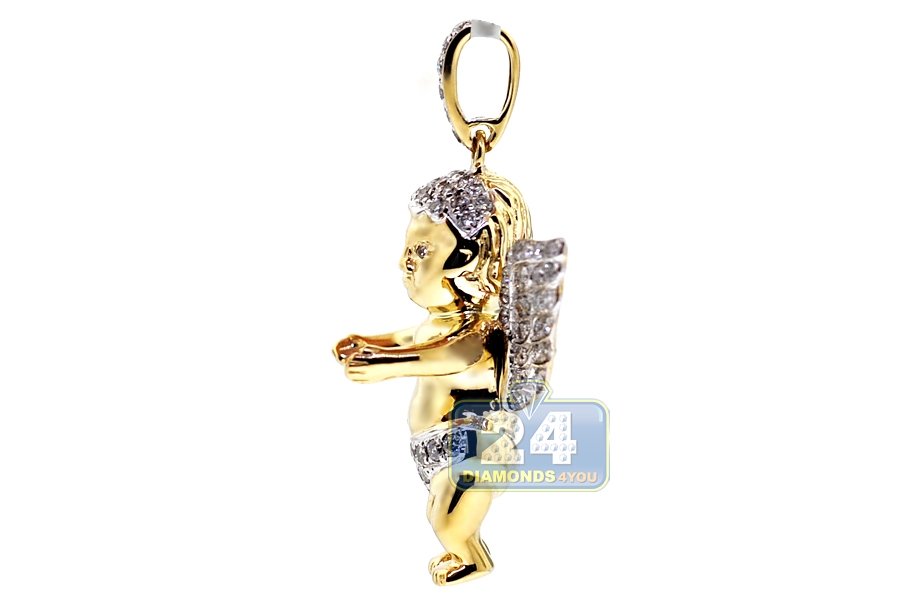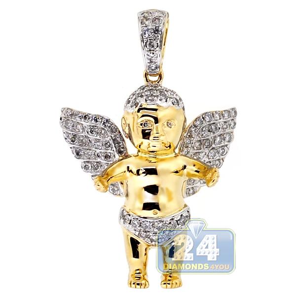 10K Yellow Gold 0.93 ct Diamond Baby Angel Mens Pendant
