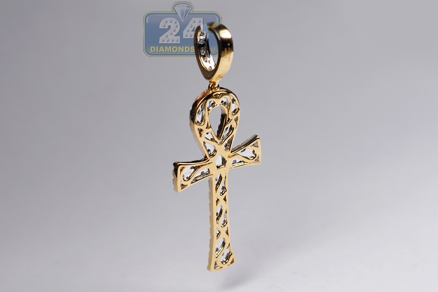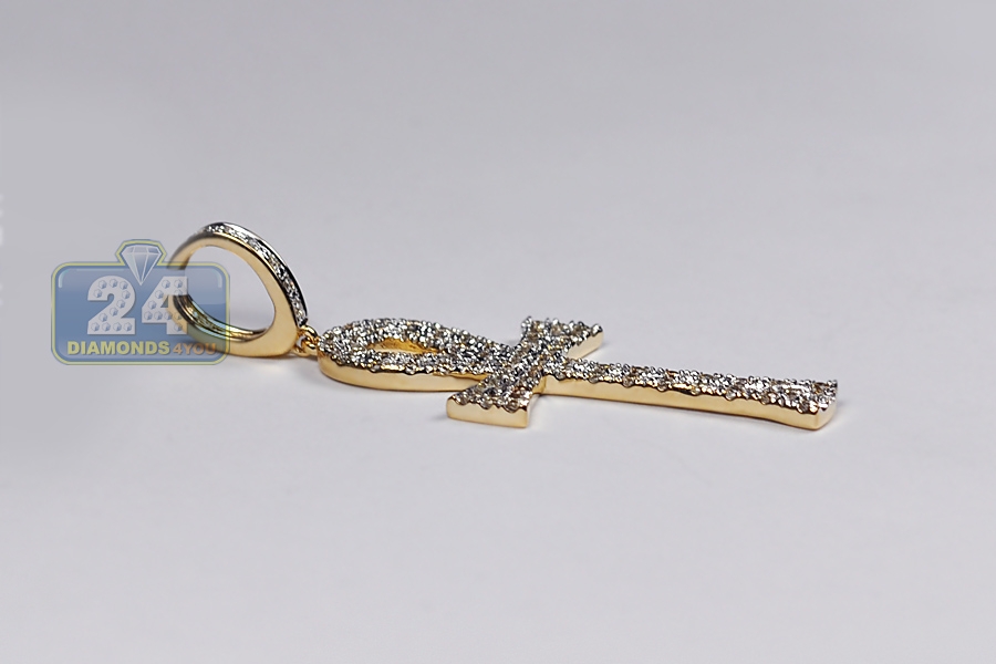 10K Yellow Gold 1.12 ct Diamond Key of Life Ankh Cross Pendant