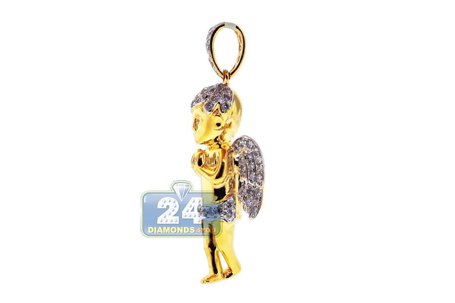 10K Yellow Gold 1.32 ct Diamond Praying Angel Mens Pendant