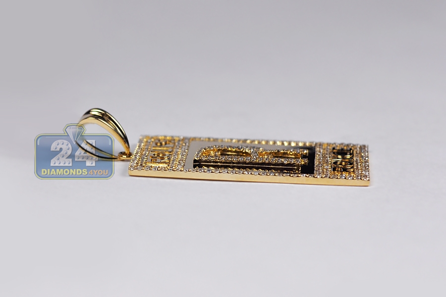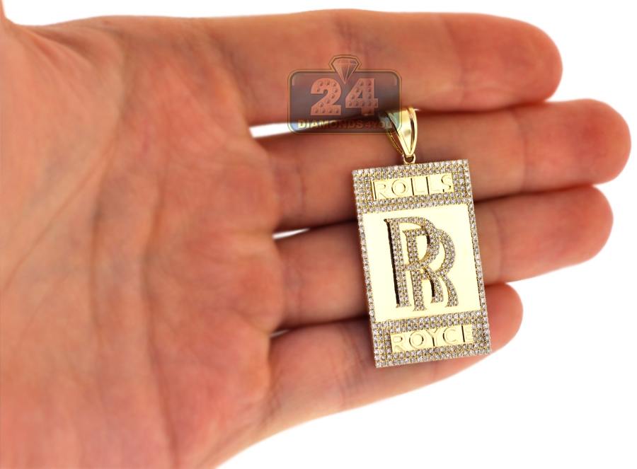 Rolls Royce is not just a car, it is a lifestyle choice! Start chasing your dream with our breathtaking RR badge pendant! It's professionally made of solid 10k yellow gold, and carefully polished for very smooth shiny finish. This Rolls Royce tag pendant is amazed with 1.63 carat of icy white round-shaped genuine diamonds. It measures 47 mm in total length, and the plate is 36 x 23 mm. The bail fits a chain of up to 2.5 mm in thickness. Our mens diamond car pendant is a distinguished piece for any collection!