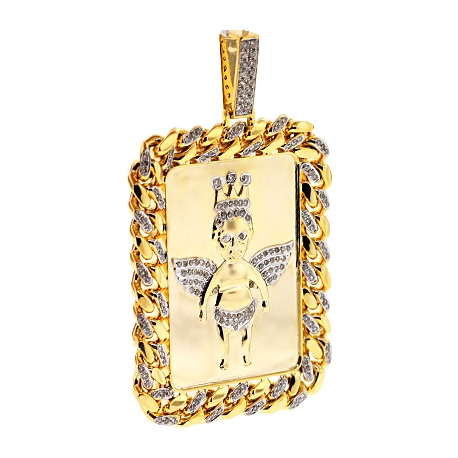 10K Yellow Gold 1.81 ct Diamond Frame Angel Mens Pendant