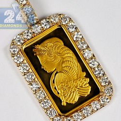 Wish someone you treasure peace and protection associated with this breathtaking Hamsa Hand of God pendant! Superbly made of warm 10k yellow gold, it has highly polished glossy finish. Our men's religious pendant is studded with 2.12 carats of icy white round brilliant-cut natural diamonds. Hanging length of the jewelry is 40 mm, and the hand itself measures 29 x 23 mm. You can use a necklace of up to 2.5 mm wide to fit the bail. This diamond Hamsa pendant is a spectacular marriage of the tradition and style!