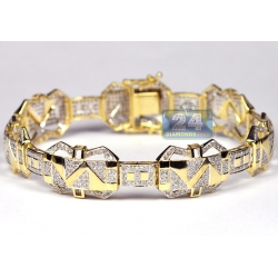 10K Yellow Gold 3.67 ct Diamond Pave Link Mens Bracelet 8.5 Inch