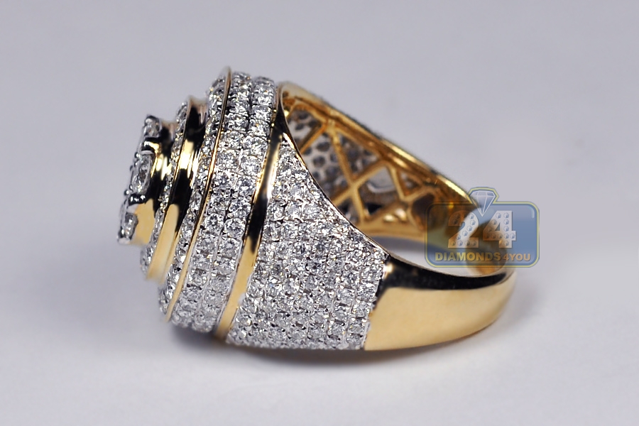 10K Yellow Gold 4.73 ct Diamond Cluster Mens Round Ring