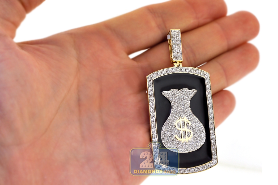 10K Yellow Gold 5.05 ct Diamond Money Bag Mens Pendant