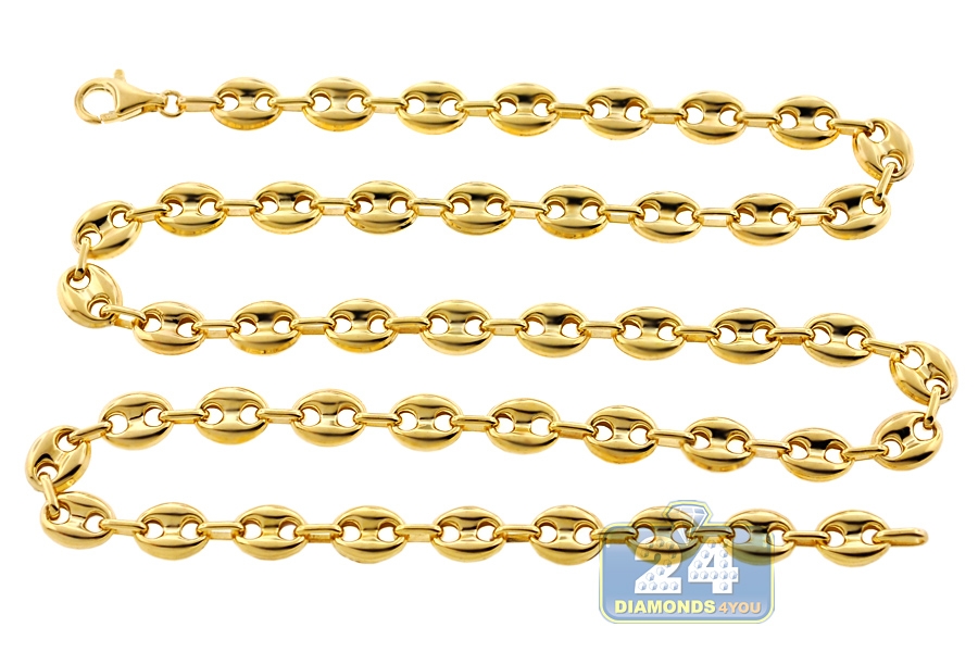 10K Yellow Gold Anchor Puff Link Mens Chain 8 mm