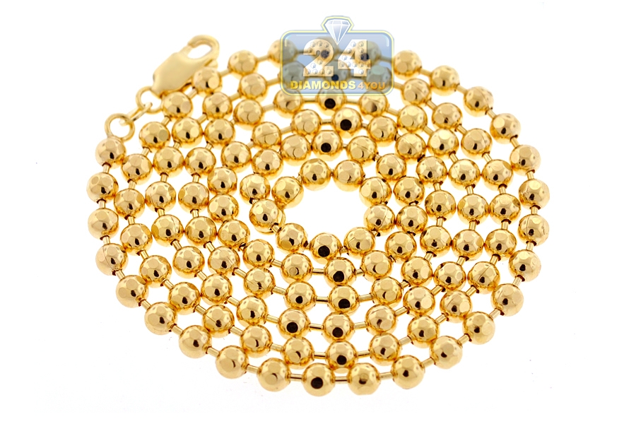10K Yellow Gold Diamond Cut Bead Mens Army Chain 4 mm