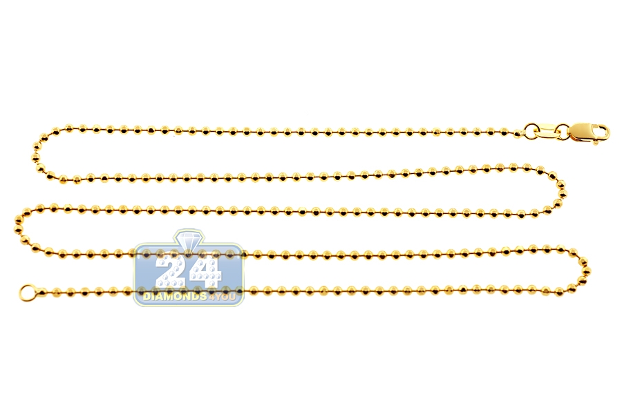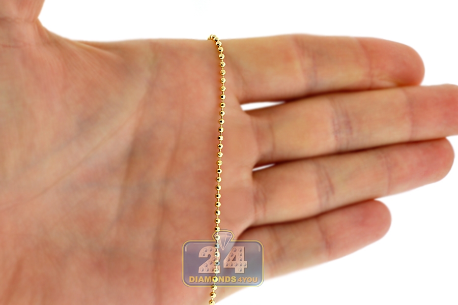 Elegant and classic, this diamond cut bead necklace is a perfect choice for a sophisticated lady or a handsome guy! It's masterly handmade of cool 10k yellow gold, and perfectly polished. The chain features 1.5 mm in width, and available in 20, 22, 24, 26 or 30 inches in length. This gold army chain boasts excellent look alone or with a your favorite pendant!