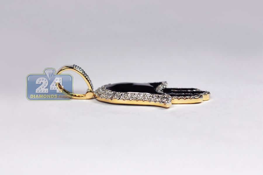 10K Yellow Gold Black Enamel 0.80 ct Diamond Hand of God Pendant