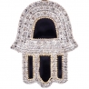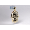 10K Yellow Gold Black Enamel Diamond Hamsa Hand Pendant