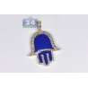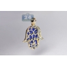 10K Yellow Gold Blue Enamel 0.46 ct Diamond Hamsa Hand Pendant