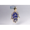 10K Yellow Gold Blue Enamel 0.80 ct Diamond Hand of God Pendant