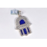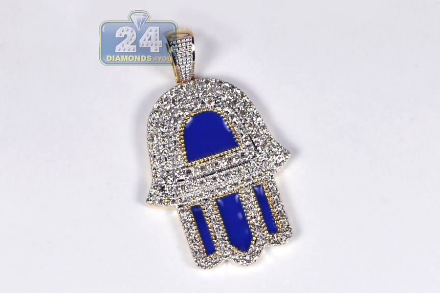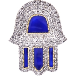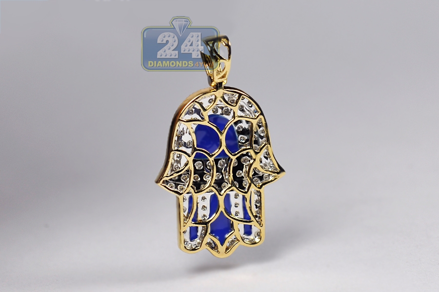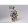 10K Yellow Gold Blue Enamel Diamond Hamsa Hand Pendant
