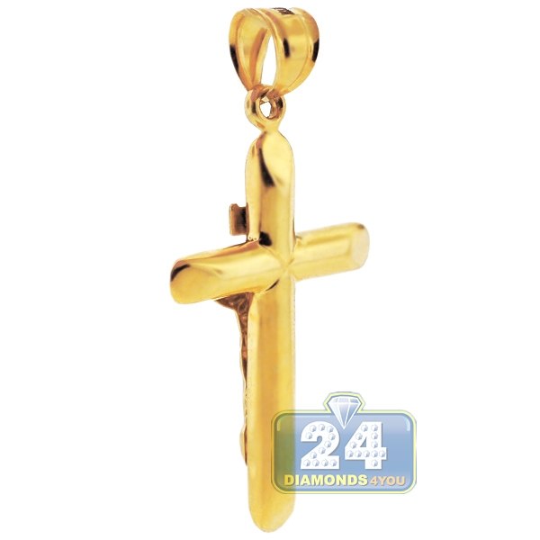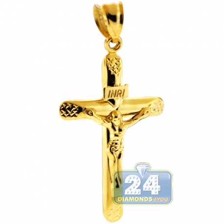 Wearing our shimmering crucifix cross, you will keep your faith close to the heart! Ably produced from 10k yellow gold, it features diamond-cut pattern on the edges. The gold religious pendant measures 51 mm in total height, and cross itself is 41 x 26 mm. This men's religious pendant is a flaunt-statement piece of jewelry! Browse our lovely collection of gold chains to find an ideal match!