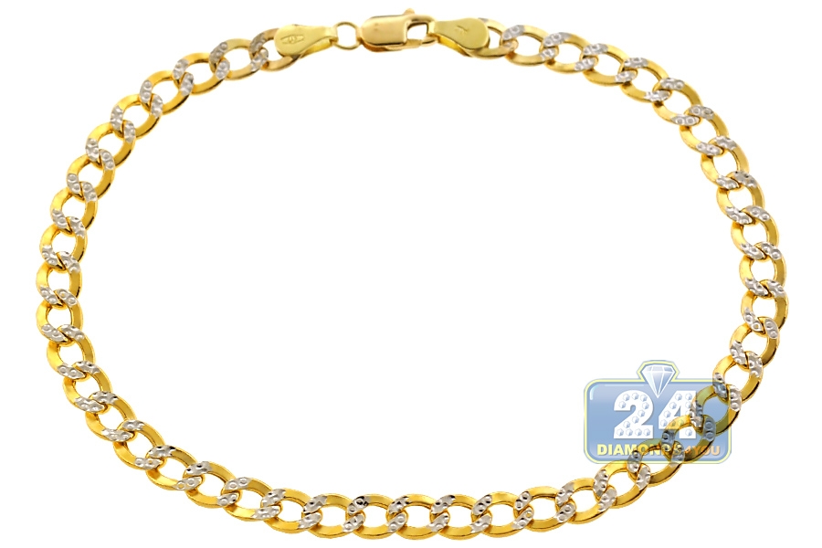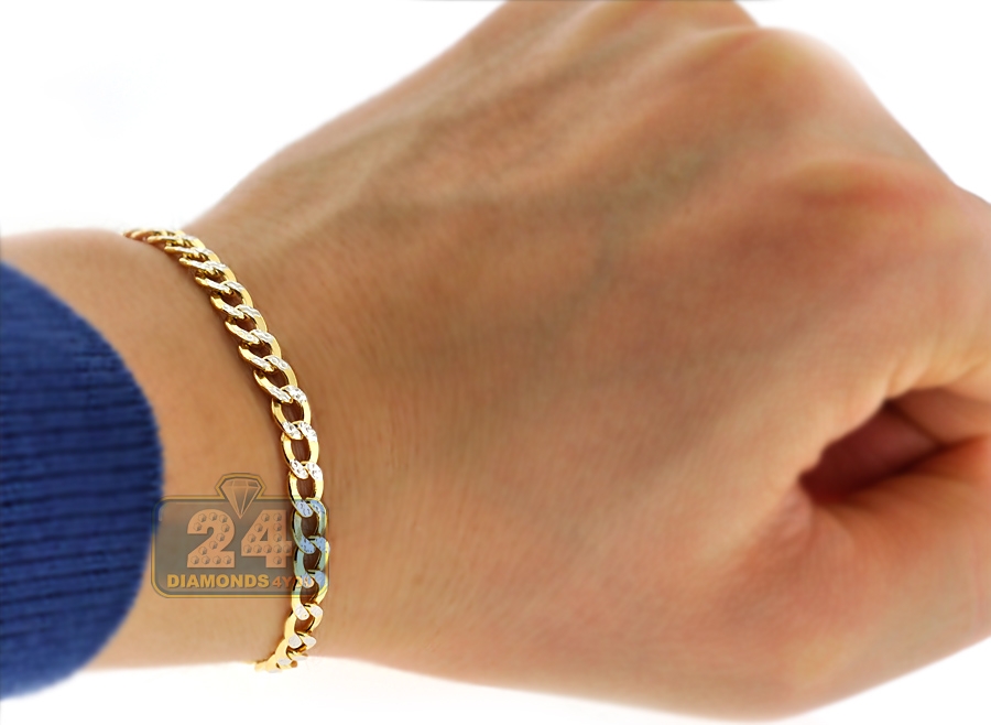 10K Yellow Gold Cuban Diamond Cut Mens Bracelet 5 mm 8 1/2 Inch