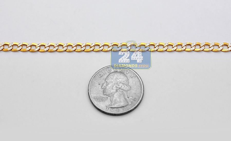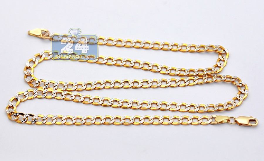 10K Yellow Gold Curb Link Diamond Cut Mens Chain 5 mm 20 Inches