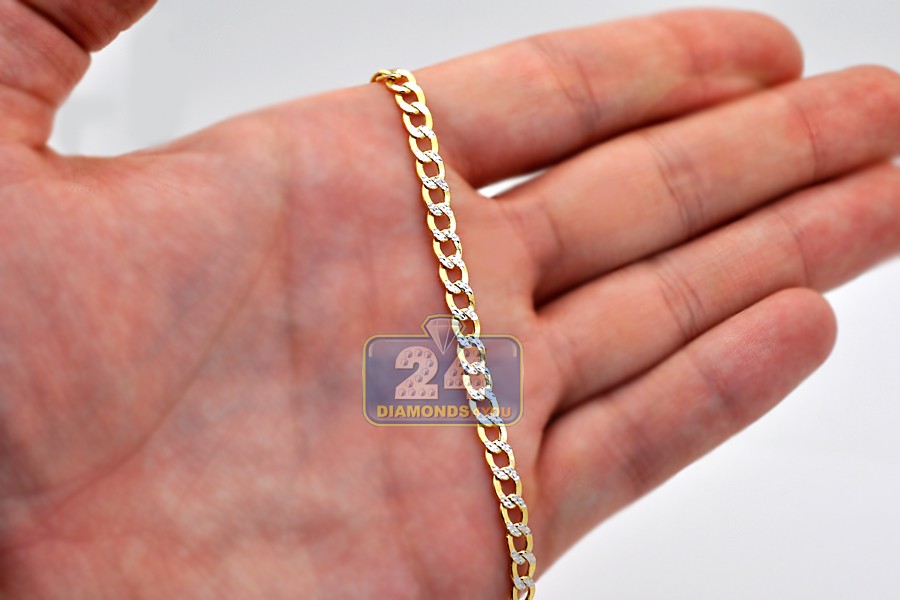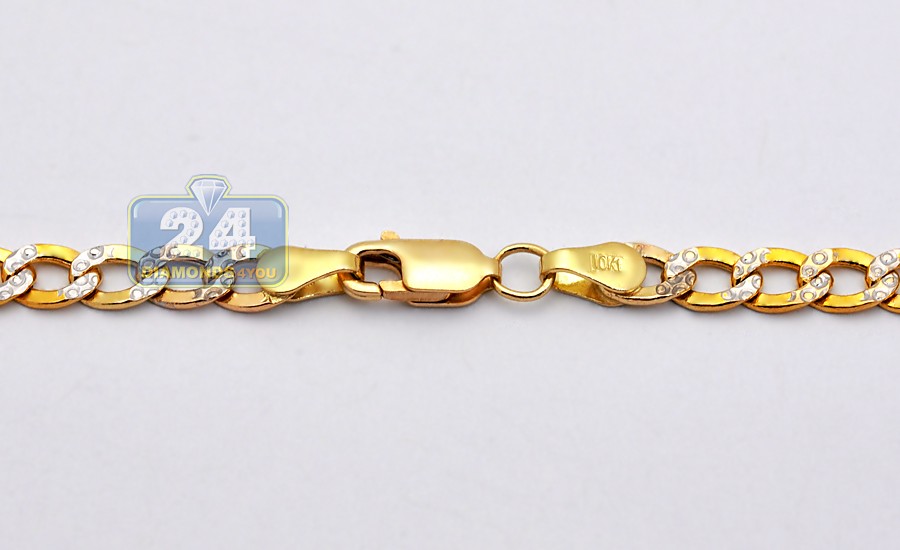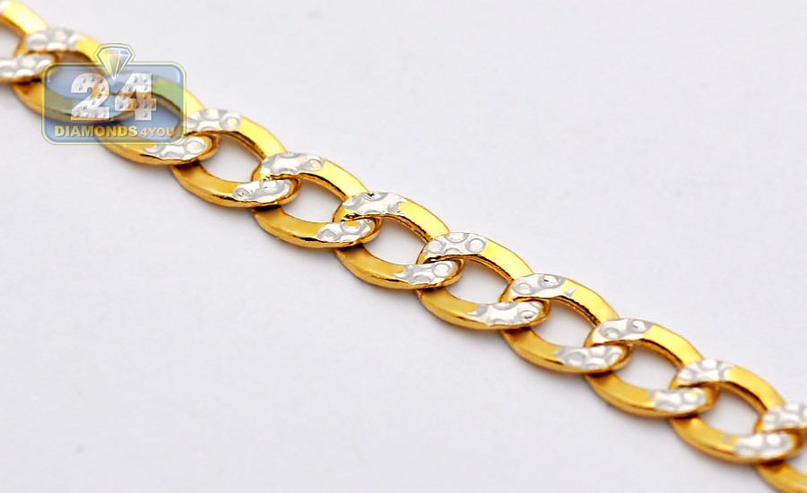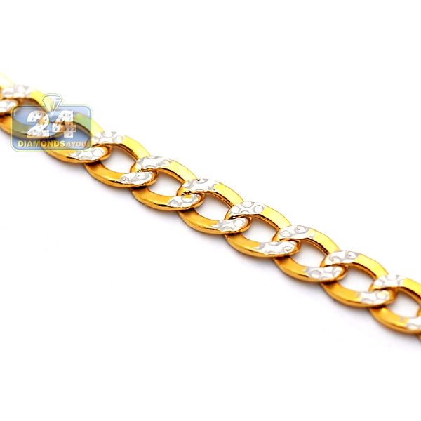 10K Yellow Gold Curb Link Diamond Cut Mens Chain 5 mm 22 Inches