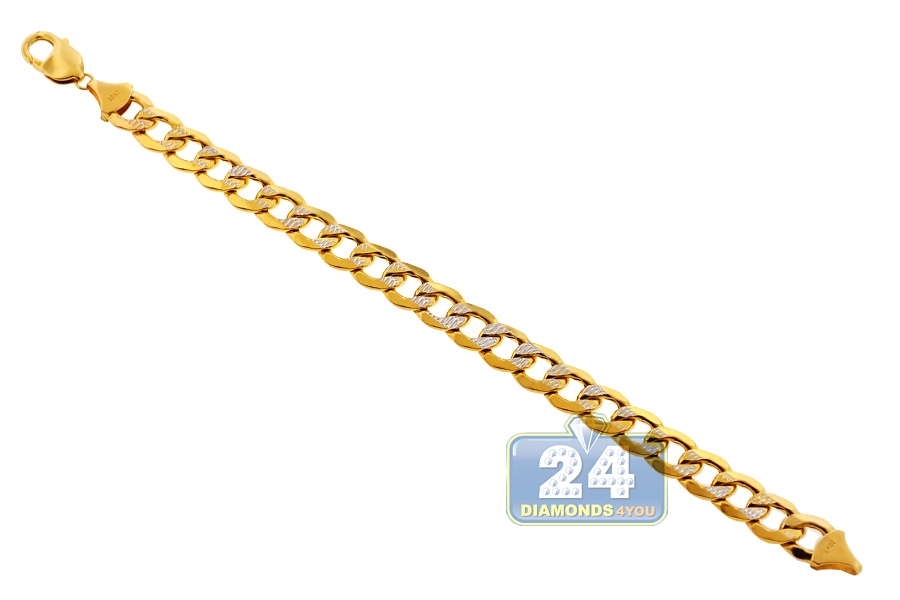 10K Yellow Gold Diamond Cut Cuban Mens Bracelet 11 mm 9 Inches