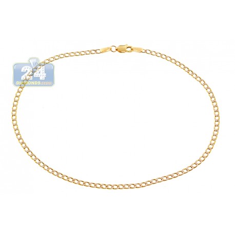 10K Yellow Gold Cuban Diamond Cut Ankle Bracelet 10 Inches