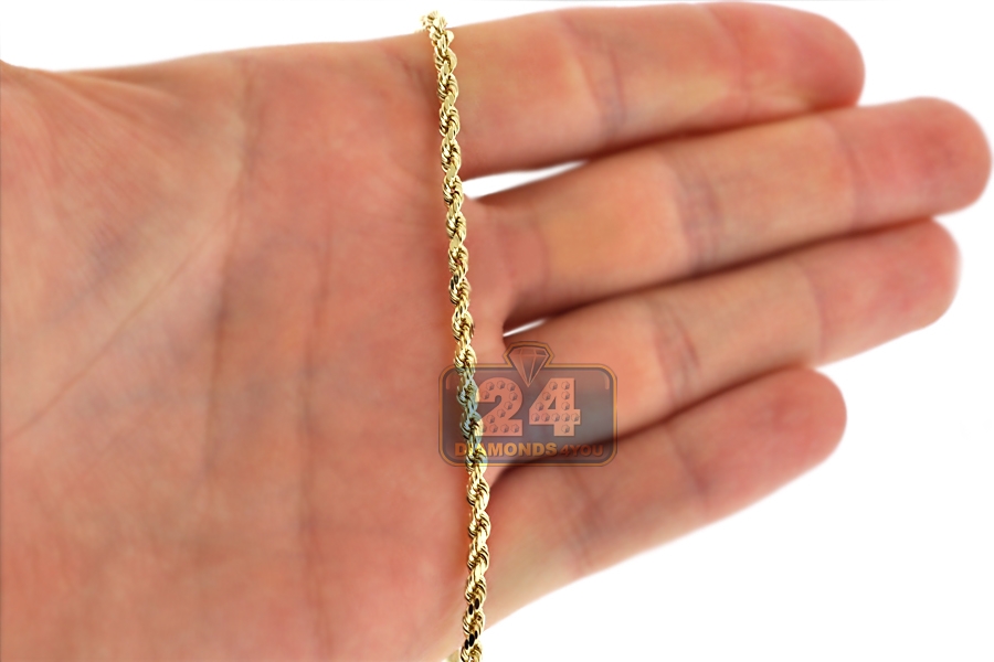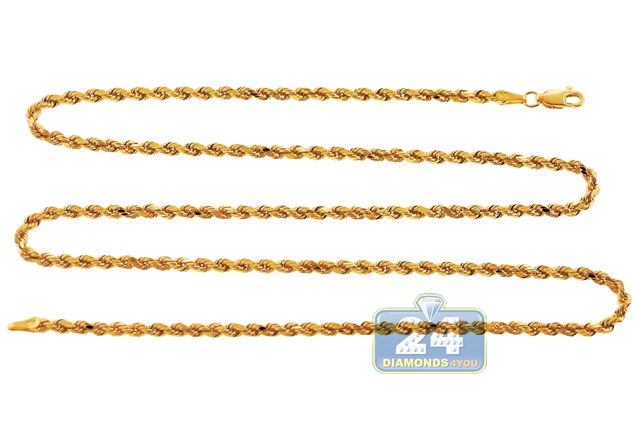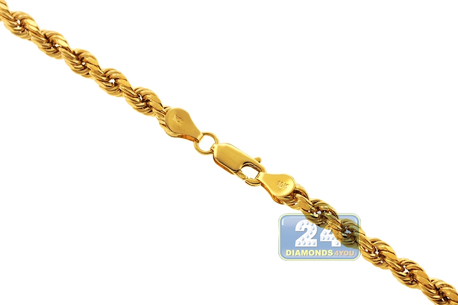 10K Yellow Gold Diamond Cut Hollow Rope Chain 3 mm