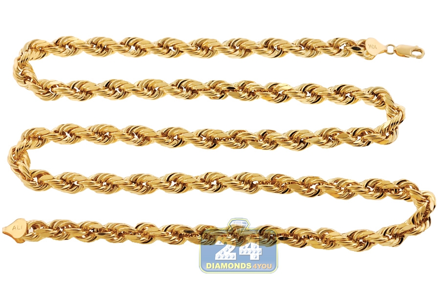 10K Yellow Gold Diamond Cut Hollow Rope Mens Chain 7 mm