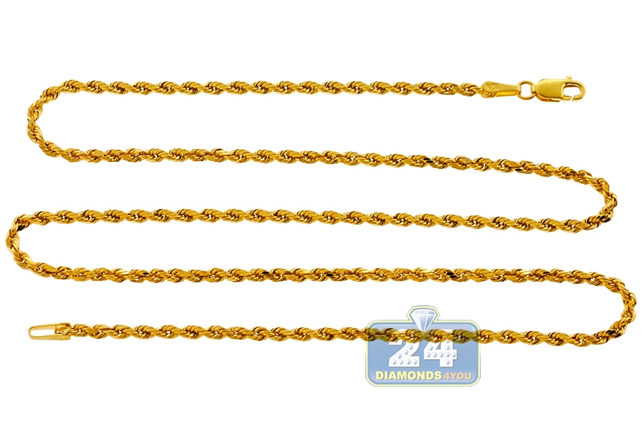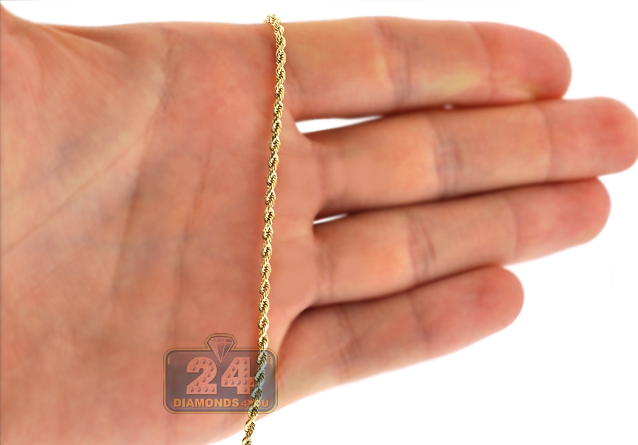 10K Yellow Gold Diamond Cut Hollow Rope Chain 2 mm