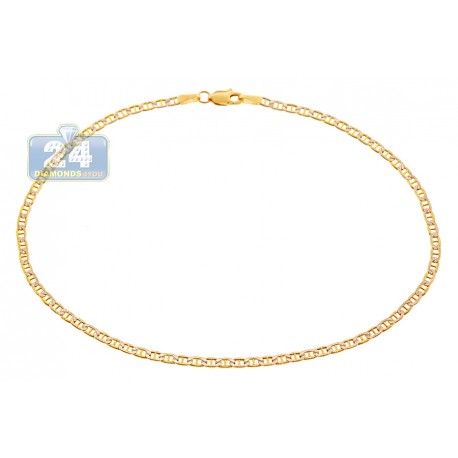 10K Yellow Gold Mariner Diamond Cut Ankle Bracelet 10 Inches