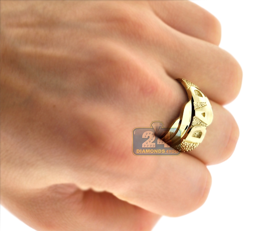 10K Yellow Gold Diamond Cut Mens DAD Ring