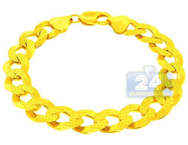 10K Yellow Gold Diamond Cut Cuban Link Mens Bracelet 14 mm