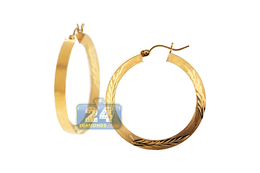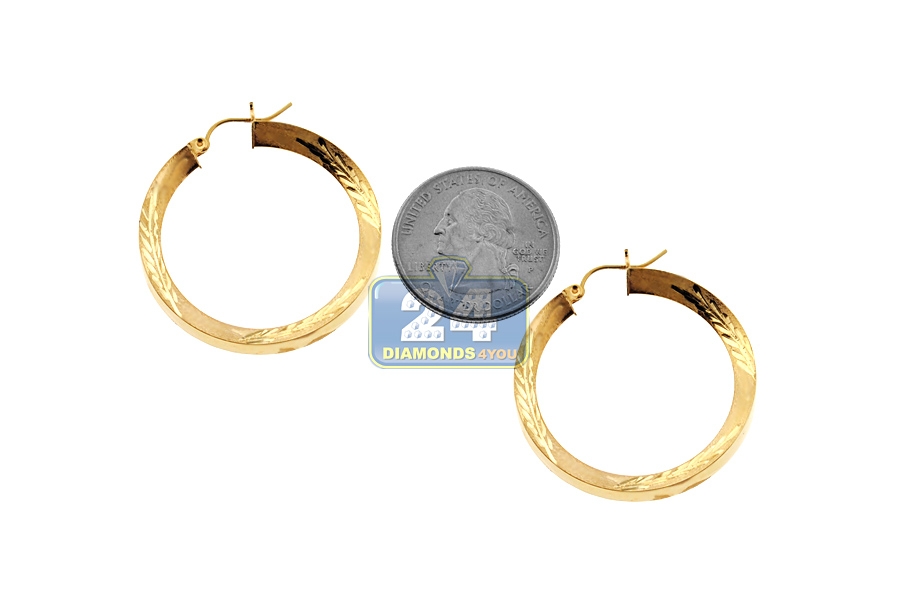 10K Yellow Gold Diamond Cut Hoop Earrings 4 mm 1 1/2 Inches