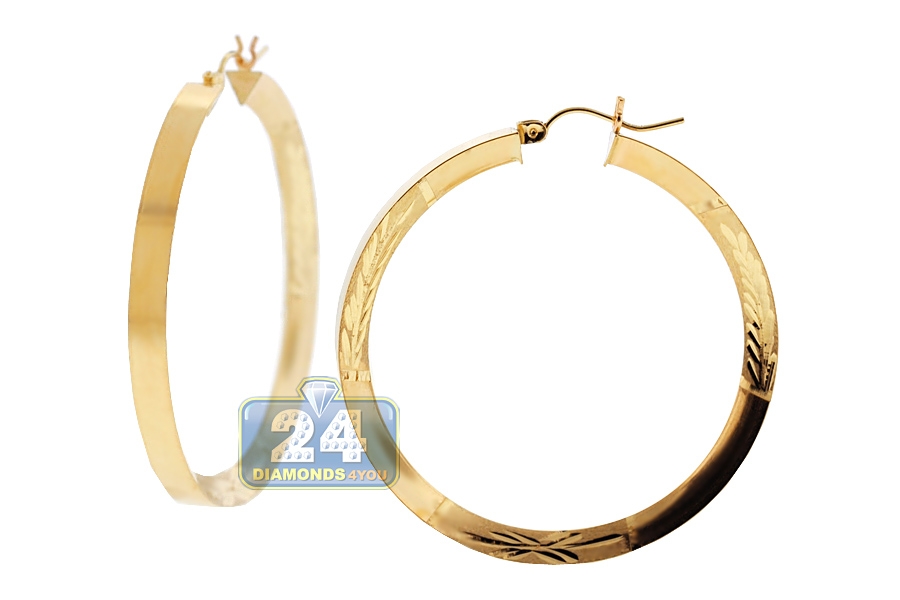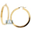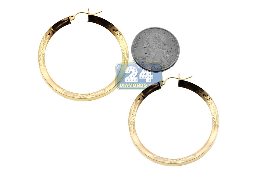 10K Yellow Gold Diamond Cut Round Hoop Earrings 4 mm 1 3/4 Inch