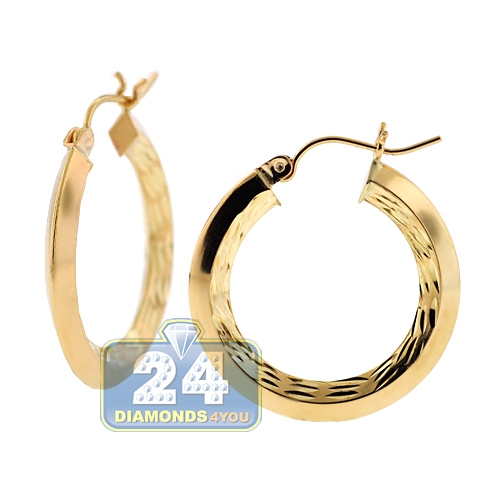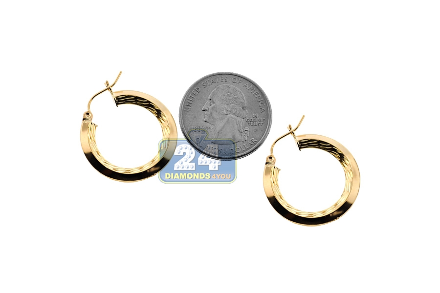 10K Yellow Gold Diamond Cut Womens Round Hoop Earrings 1 inch