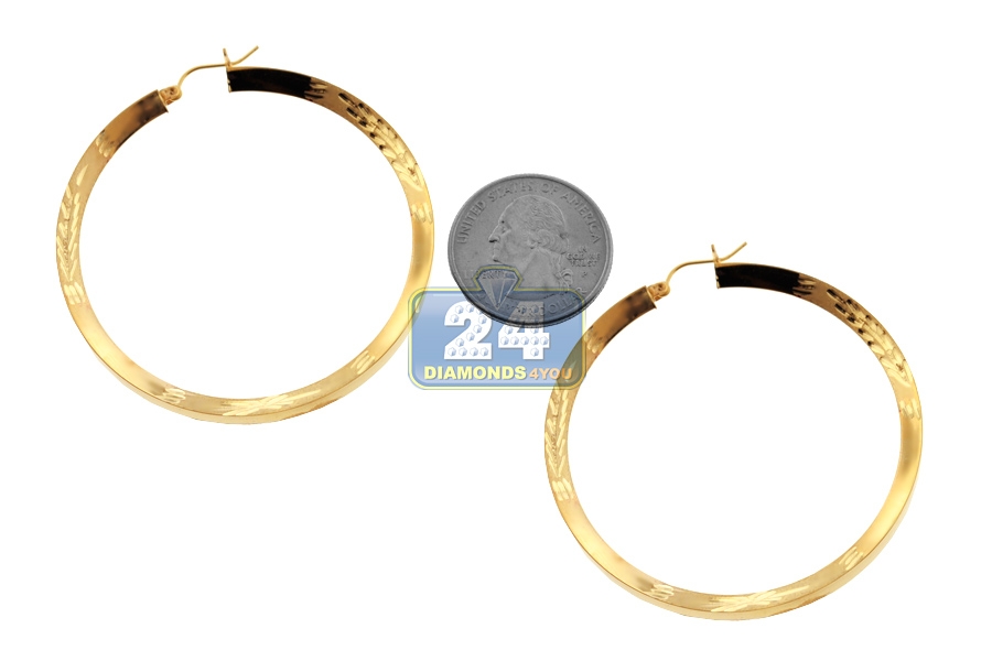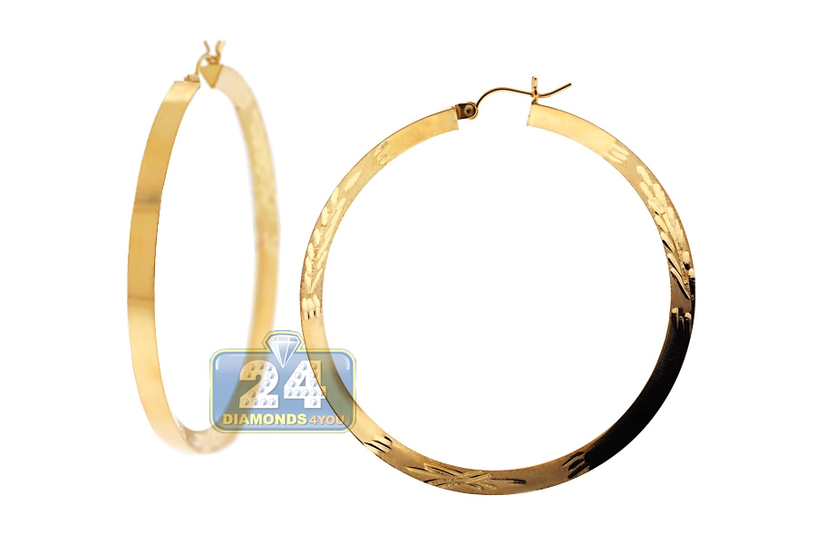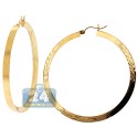 10K Yellow Gold Floral Round Hoop Earrings 4 mm 2 1/4 Inches