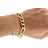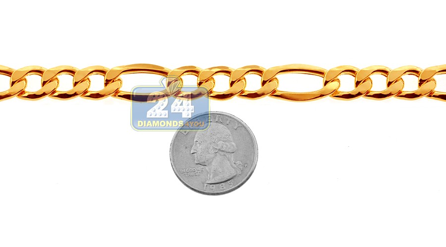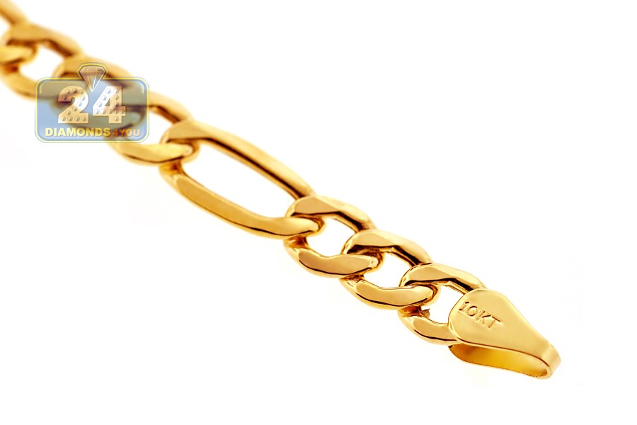10K Yellow Gold Figaro Hollow Link Mens Bracelet 11 mm 9.25 Inch