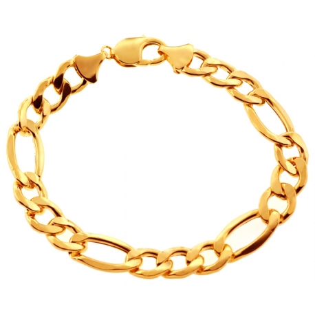 This gold Figaro bracelet is a timeless piece of jewelry for any occasion! It has hollow design, and made of Italian 10k yellow gold. The bracelet measures 9 1/4 inches in length, 11 mm in width and approximately 17.1 grams in weight. It also features lobster claw closure. This men's gold bracelet provides a fashionable accessory to many outfits!